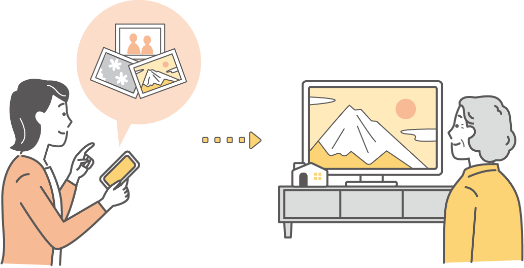 親側は、使い慣れたテレビと、シンプルなリモコンで操作ができるため、スマートフォン・IT機器の操作が苦手な人にもぴったりです。
