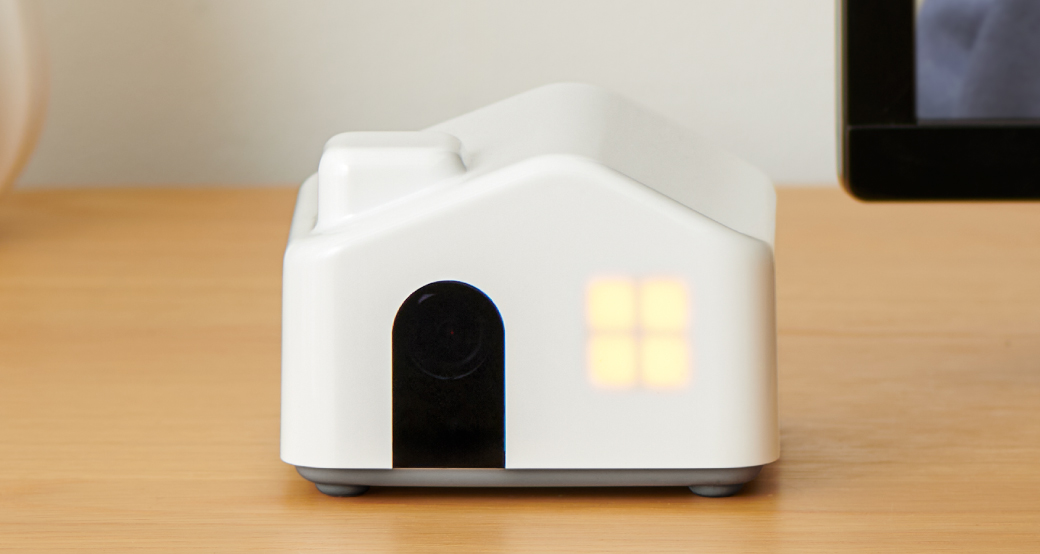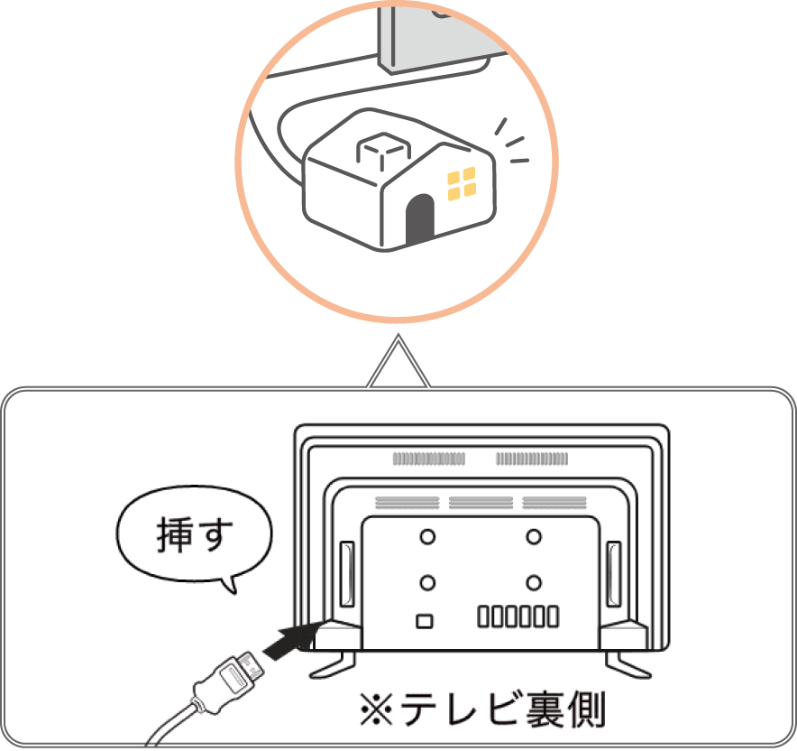 家型の端末とテレビをHDMIケーブルでつなぎ、コンセントに挿すだけでテレビ電話が可能です。